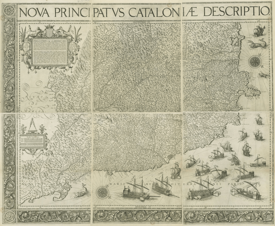 - Vrientius, Johannes Baptista (1602-1605): Nova principatus Cataloniae descriptio. Anvers. Escala aproximada 1:250.000. Font: Bibliothèque nationale de France, GE DD-5896 (1-6RES).